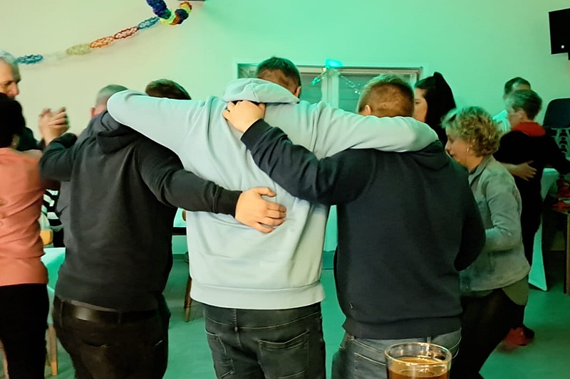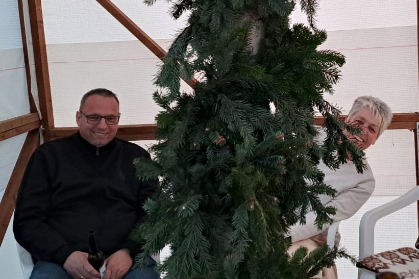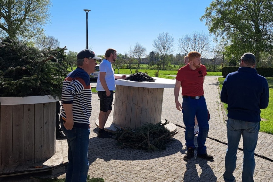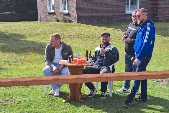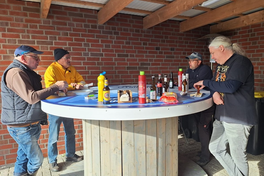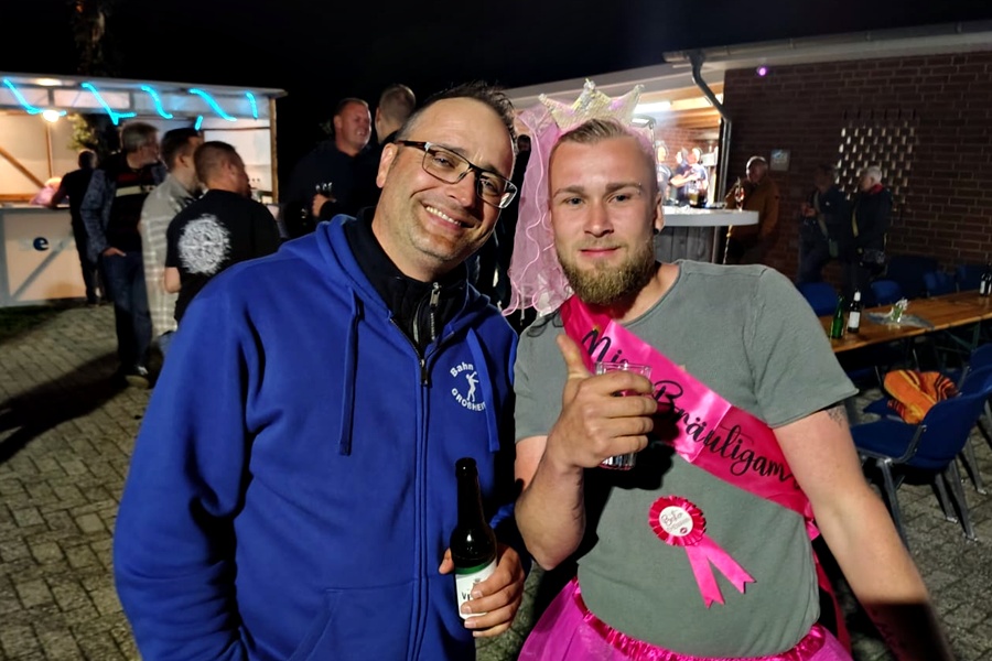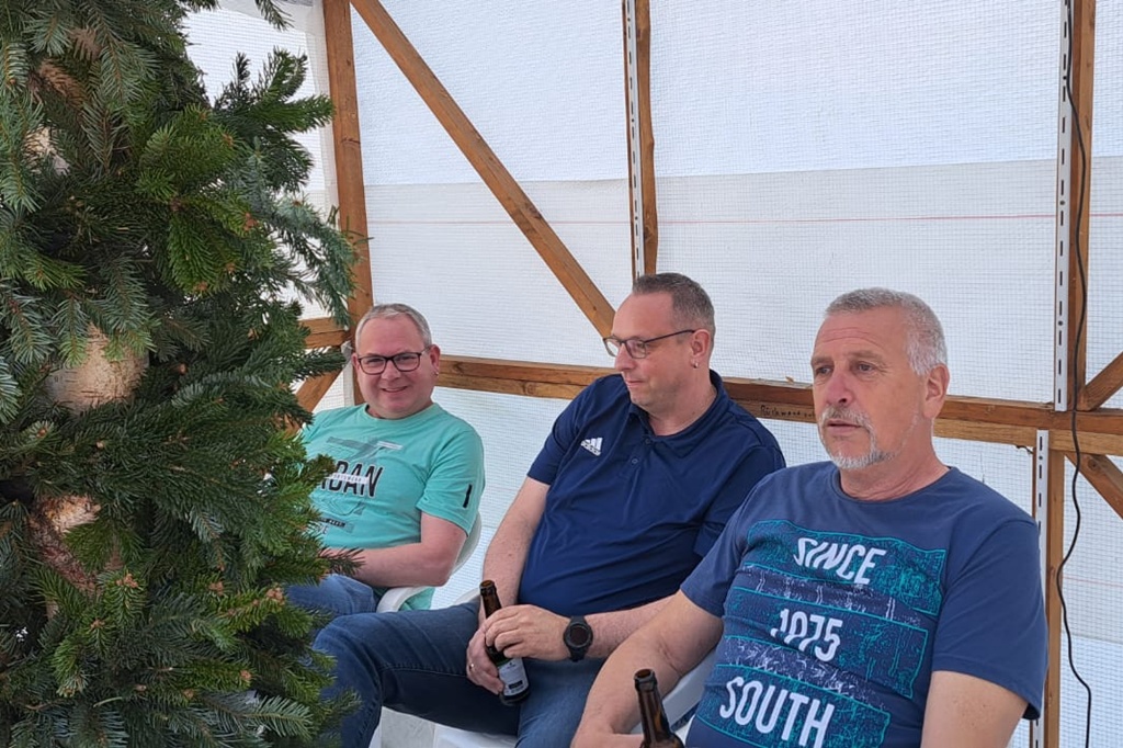 Wie jeden letzten Freitag im Monat ist bei "Bahn free" der Stammtisch mit unterhaltsamen Gesprächen. Diesmal wurde aber auch der Brauch des "Maibaum einholen" in Angriff genommen.