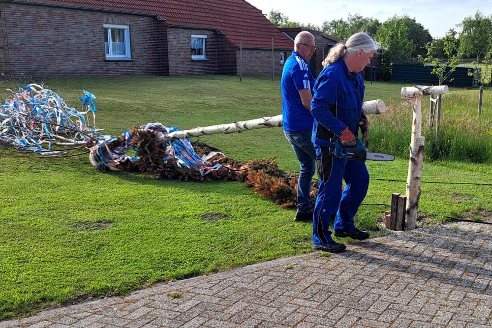 Nach altem Brauch wird der Maibaum in der Regel Ende Mai eingeholt. Die bunten Bänder, Kränze und sonstigen Dekorationen wurden von den Mitgliedern abgenommen.