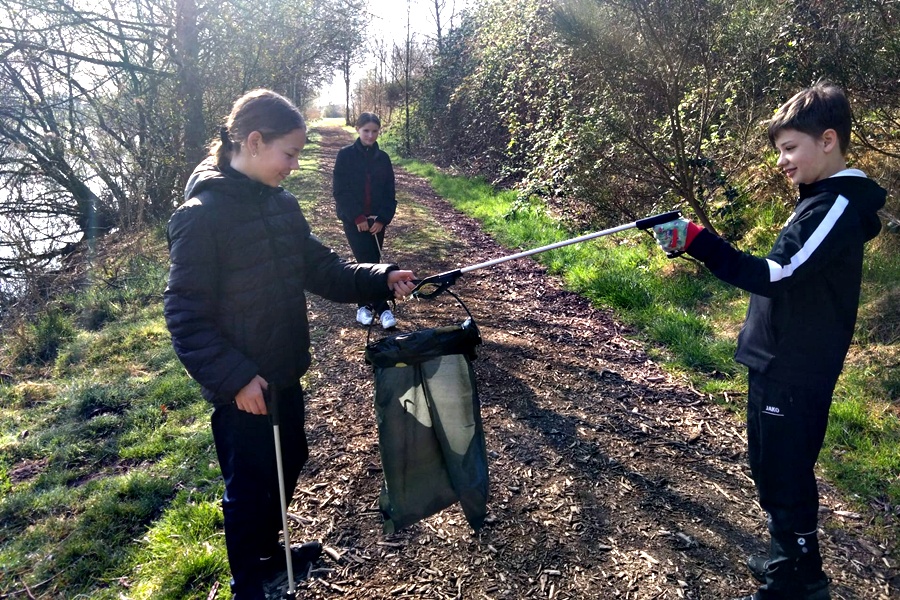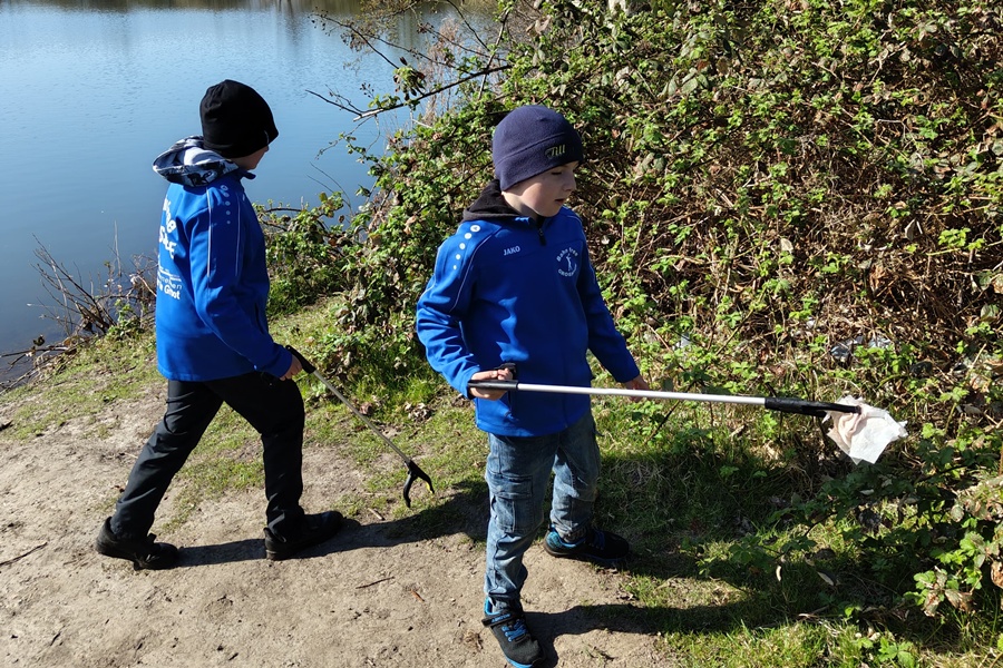 Und am Samstag machten sich die Jugendlichen mit ihren Betreuern rund um den Kiessee und an der Schloßstraße auf Müllsuche. Neben den üblich weggeworfenen Flaschen, Dosen und Plastikverpackungen landeten auch ein Fußball und ein Kissenbezug im Müllsack.