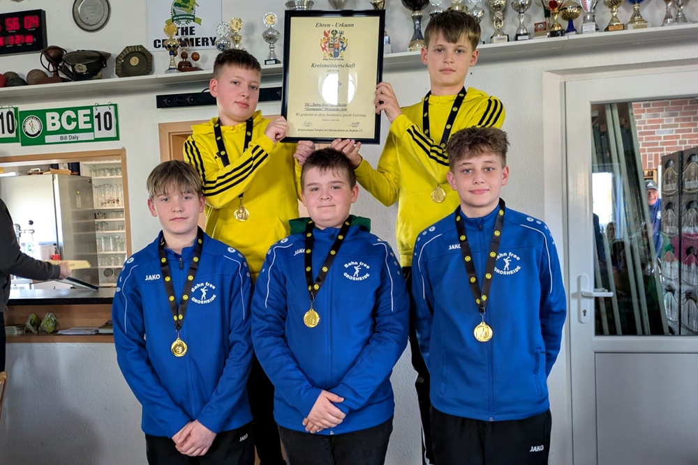 Die mJD SG "Bahn free" Großheide - "Nordstern" Ostermoodorf und die mJC SG "Bahn free" Großheide - "Germania" Menstede-Arle werden für die Kreismeisterschaft geehrt und im weiblichen Bereich wird die C-Jugend wie auch Frauen II Vizemeister.