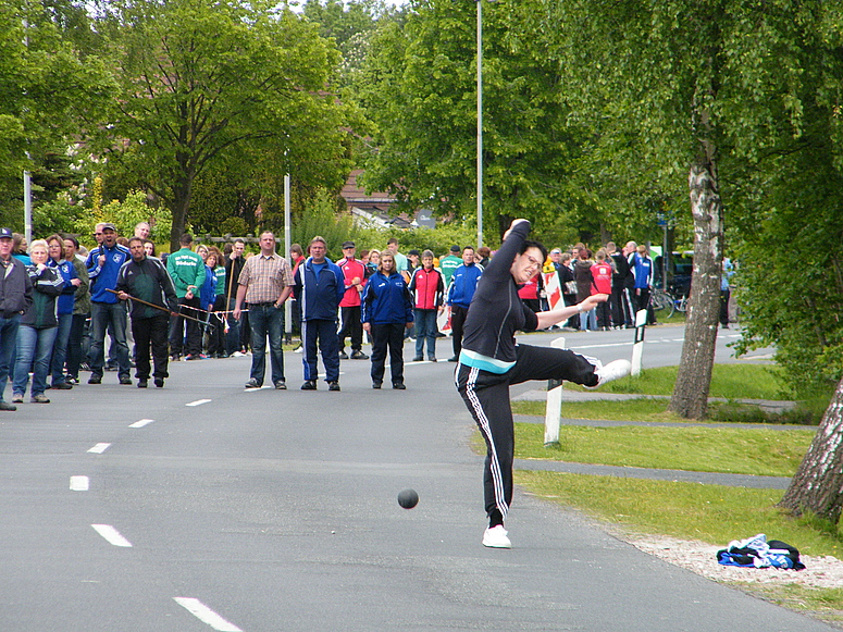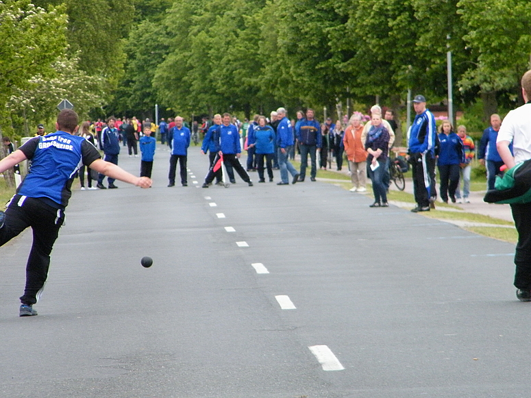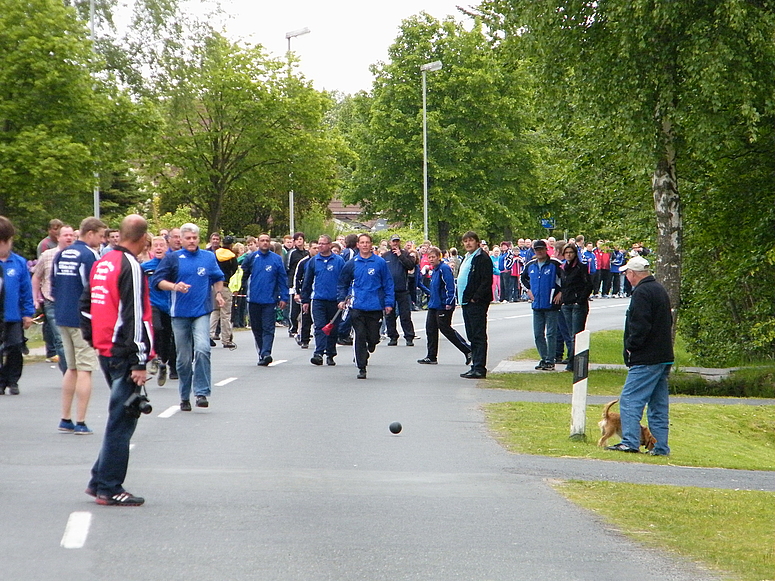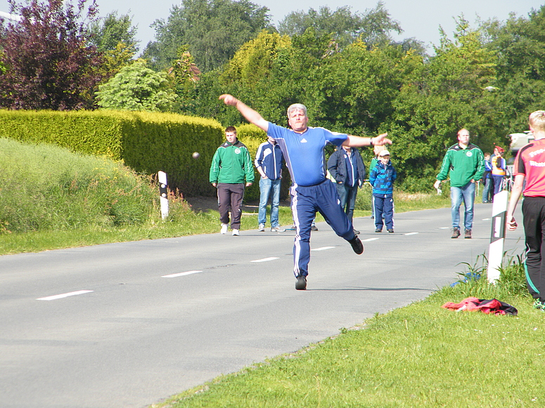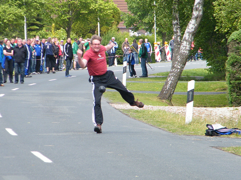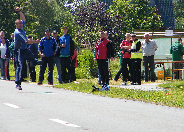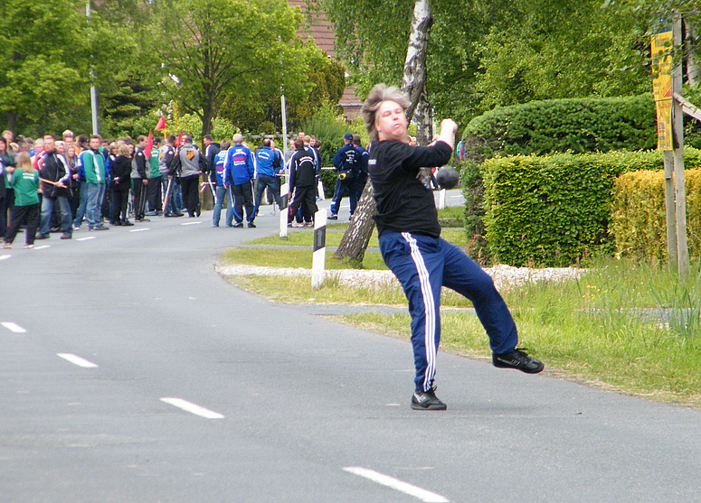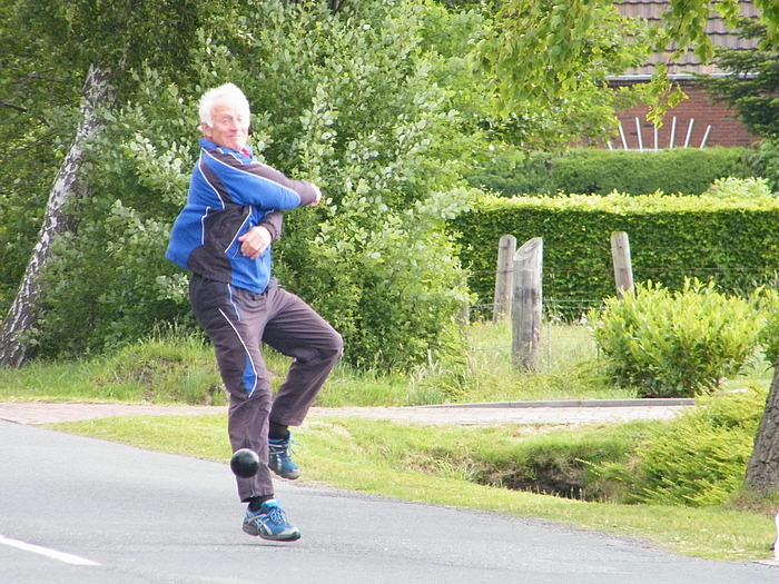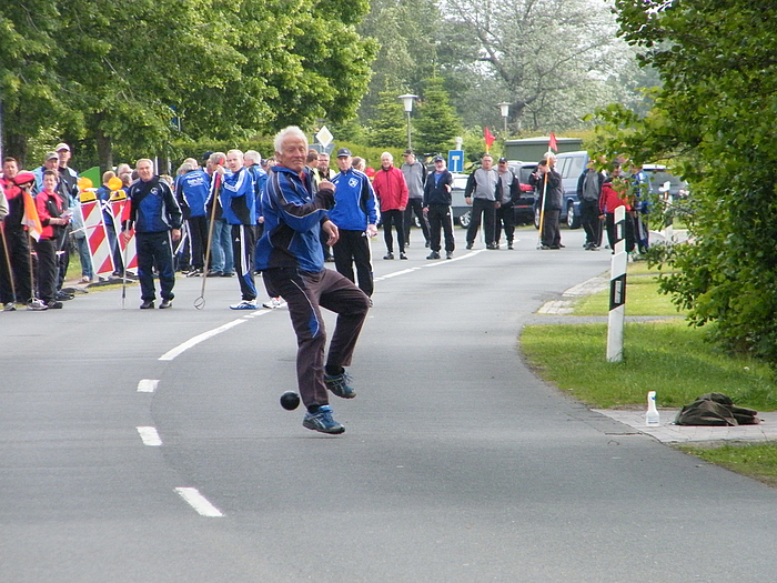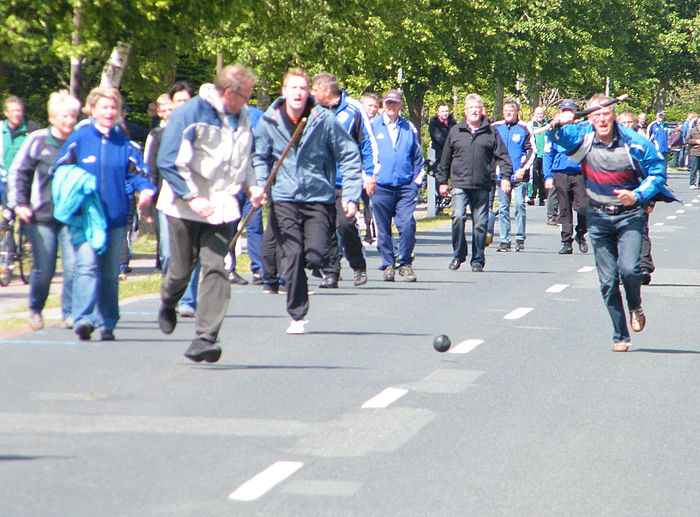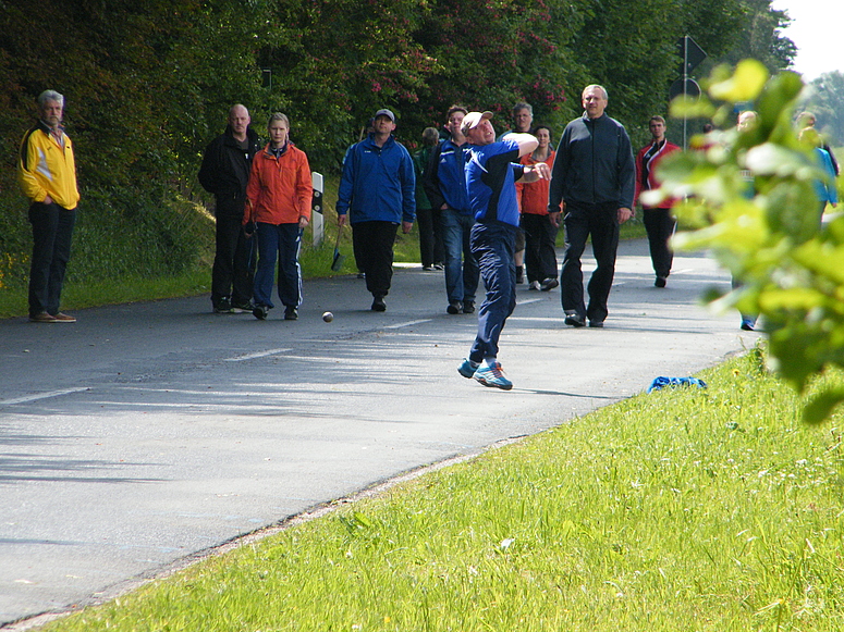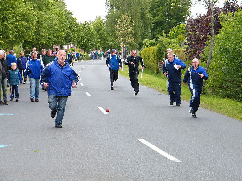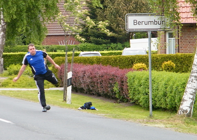 Eines der Höhepunkte im Bosselsport sind die Einzelmeisterschaften. Hier zeigen die Bosslerinnen und Bossler ihr können. In diesem Jahr fanden die Einzelmeisterschaften vom Kreisverband Norden in Berumbur statt. Auf der Holzdorfer Straße waren diesmal alle Bossler, von der F-Jugend bis Männer I, zugast. Die Eisenwettbewerbe fanden in Osteel statt. Da in Berumbur alle Altersklassen werfen mussten, gab es nicht nur in den Wettkämpfen ein straffes Programm. Wer in der Woche trainieren wollte, konnte sich auf Wartezeiten am Startpunkt einrichten. Trotzdem wurden die Trainingszeiten, so der Kreisverband, immer eingehalten. Wie der Kreisverband auch mitteilte, sollte im nächsten Jahr, wenn wieder auf nur einer Strecke geworfen wird, ein gesondertes Programm mit Trainingszeiten für Jugendliche und Frauen bzw. Männer mit entsprechenden Übungstagen ausgearbeitet werden. Dies ist auch dringend notwendig. In Berumbur wurde ab der Postdienststelle in Richtung Berumerfehn geworfen. Hier stellte der Start hohe Anforderungen in Sachen Genauigkeit und Kraft an den Werfer. Die gesamte Strecke hatte es in sich. Besonderes Kopfzerbrechen bereitete aber die 90 Grad Kurve Ecke Linienweg / Holzdorfer Straße. Hier zerplatzen oft die Siegeswünsche einiger Bosslerinnen und Bossler. Die Einzelmeisterschaften waren gut organisiert. Die Startzeiten wurden im Großen und Ganzen eingehalten. Die Verpflegung, die vom KBV „Freesenkraft“ Berumbur und der in der Postdienststelle ansässigen Jugend, war hervorragend. Von Kaffee und Kuchen bis Pommes und Bratwurst war alles zu haben, und dies zu günstigen Preisen. Das Wetter spielte ebenfalls mit. An allen Wettkampftagen war es ein gutes Bosselwetter. Alles dies machten die Einzelmeisterschaften wieder zu einem Publikumsmagnet. Wir wünschen allen qualifizierten Werferinnen und Werfer für die Landesmeisterschaften viel Erfolg. |