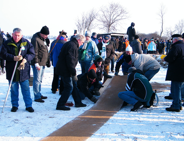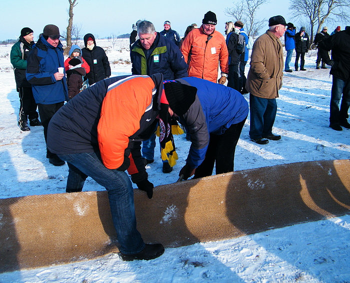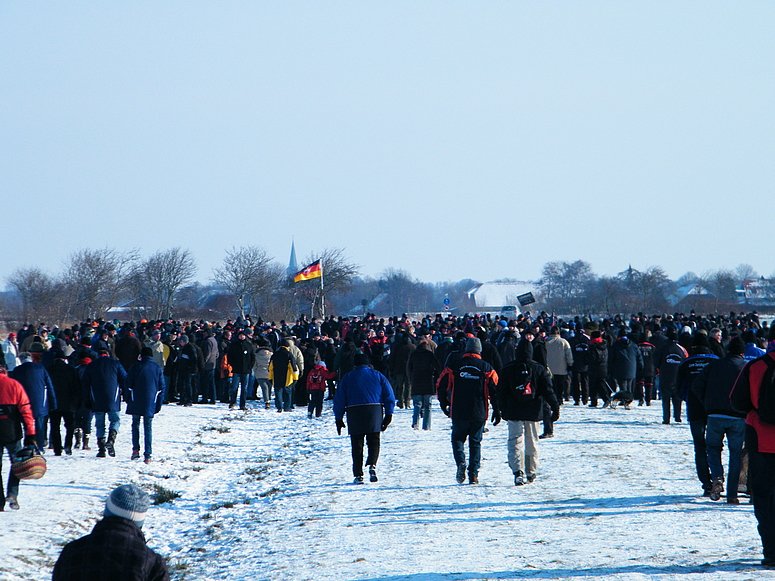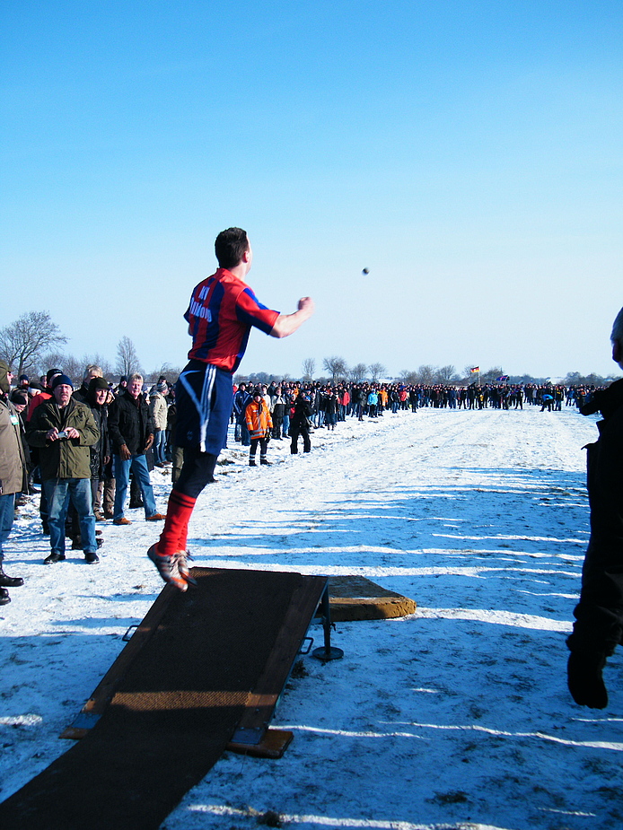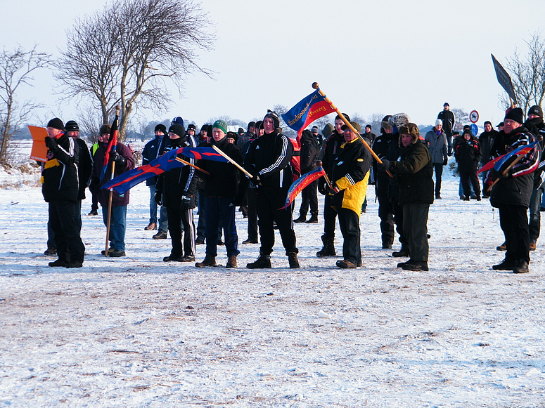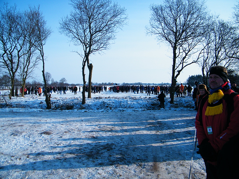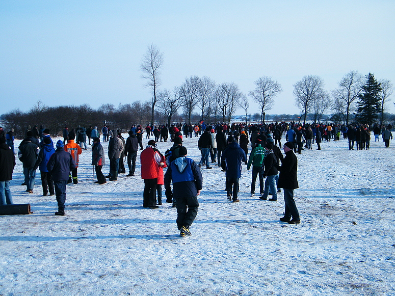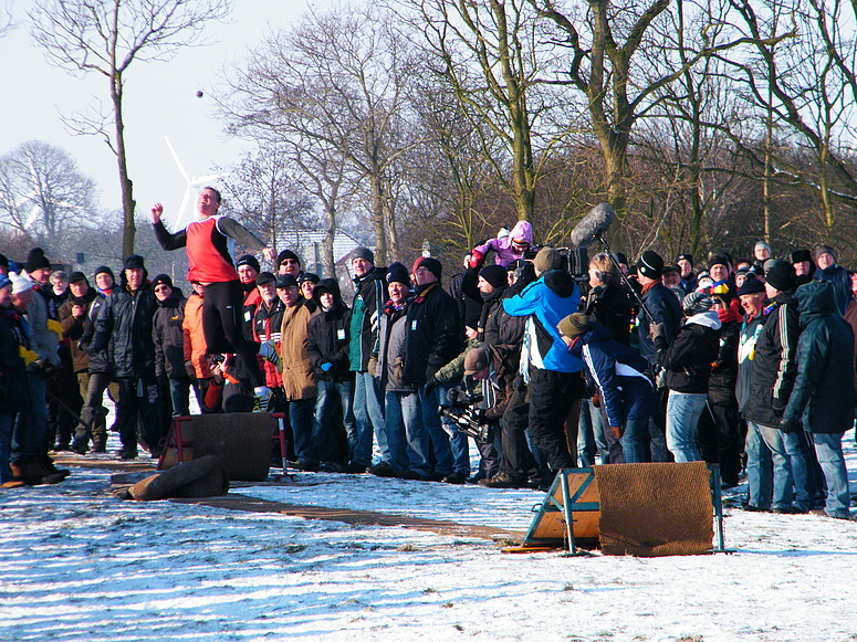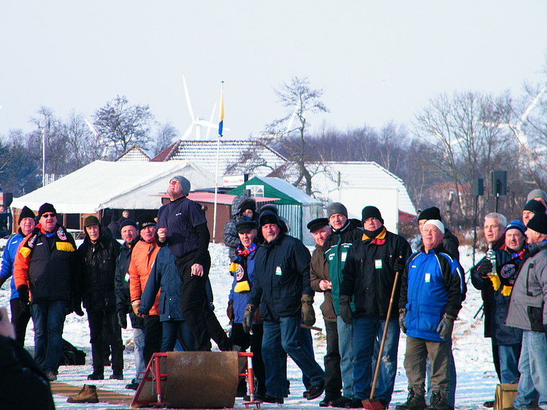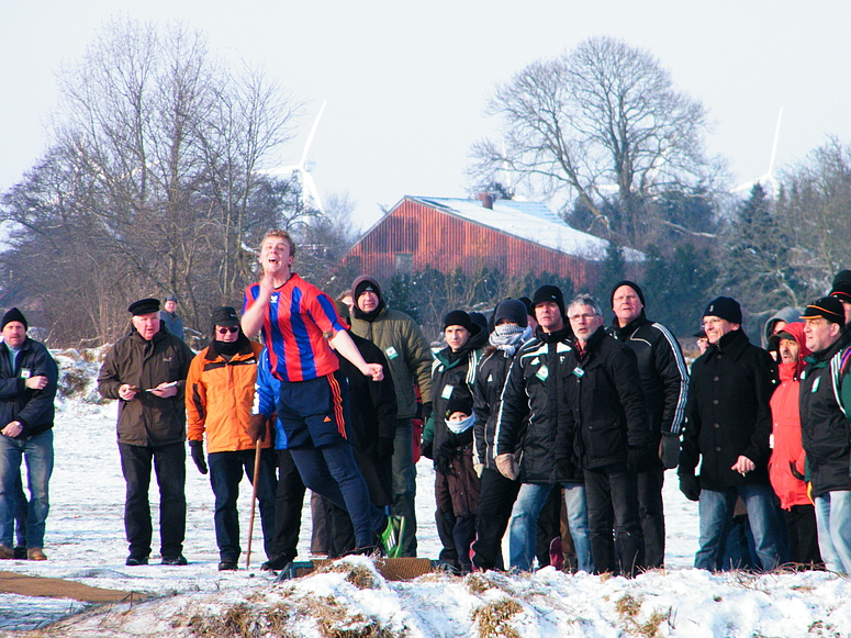 Kalter aber leichter Wind in freiem Gelände, hart gefrorener Boden mit leichter Schneedecke. Die Werfer, Bahnanweiser mit ihren Fahnen sowie die Käkler und Mäkler, all dies ist Feldkampf. In Utgast ist dieses Jahr ein perfekter Feldkampf möglich gewesen, nicht nur das Wetter spielte mit, auch die Bahn ist hervorragend hergerichtet worden. Sie hatte einiges an Hindernissen zu bieten, ob Gräben, Baumreihen oder Grenzwälle. Alles zusammen machte es zu einem spannenden Feldkampf. Ein tolles Wochenende für alle die dabei waren. Es hat sehr viel Spass gemacht. |