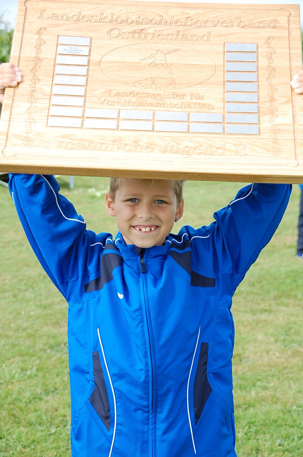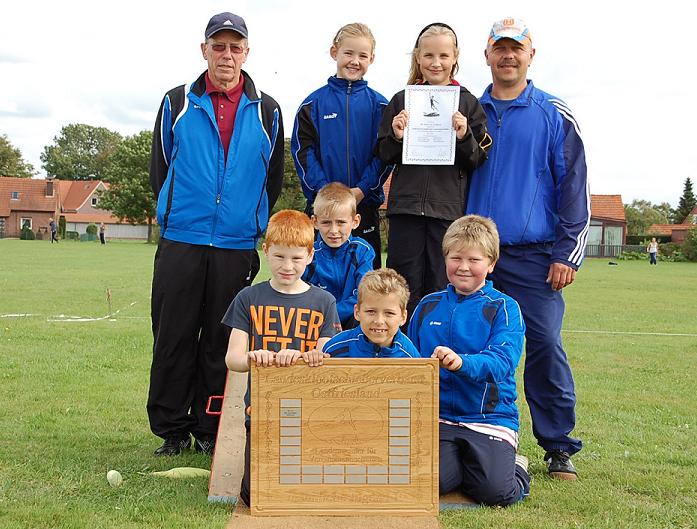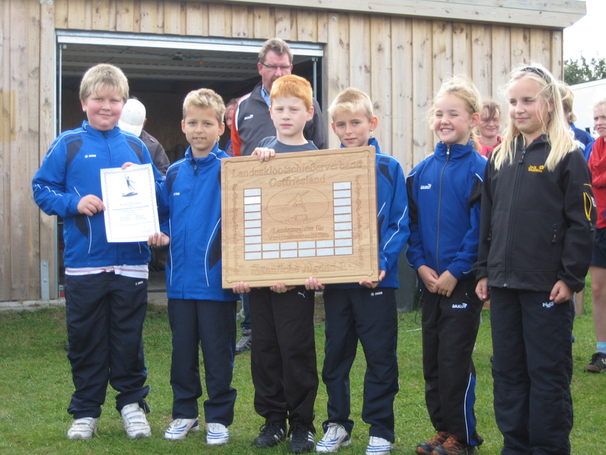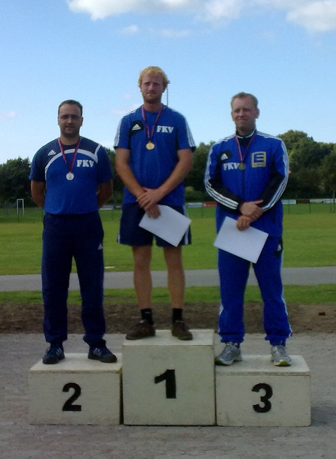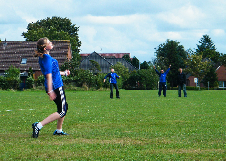 Anna Oldewurtel (Platz 5-20,65m), Jasmina Doolmann (Platz 1-43,70m) und Ralf Look (Platz 2-73,75m) qualifizierten sich bei den Landesmeisterschaften “Kloot” 2012 in Tannenhausen zur Verbandsmeisterschaft auf FKV Ebene (100:100) am 22.09.2012, die ebenfalls in Tannenhausen stattfinden. Jasmina sicherte sich mit Platz 1 und hervorragenden 43,70 m den Landesmeistertitel. |