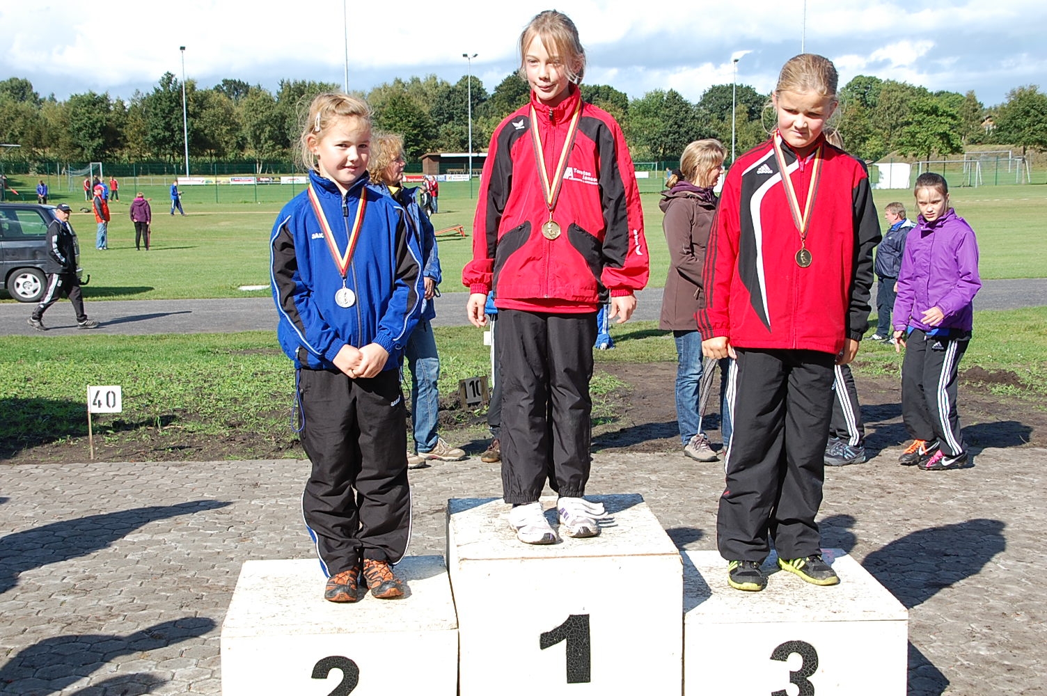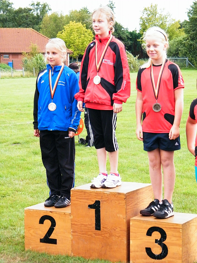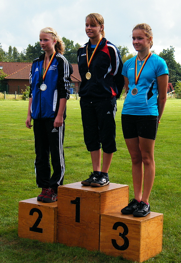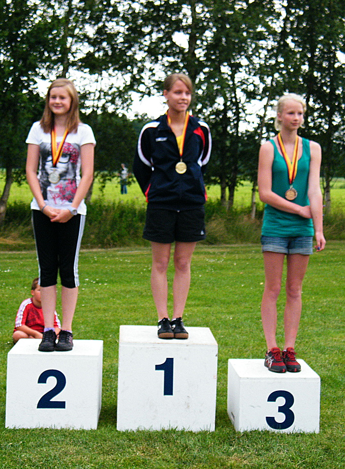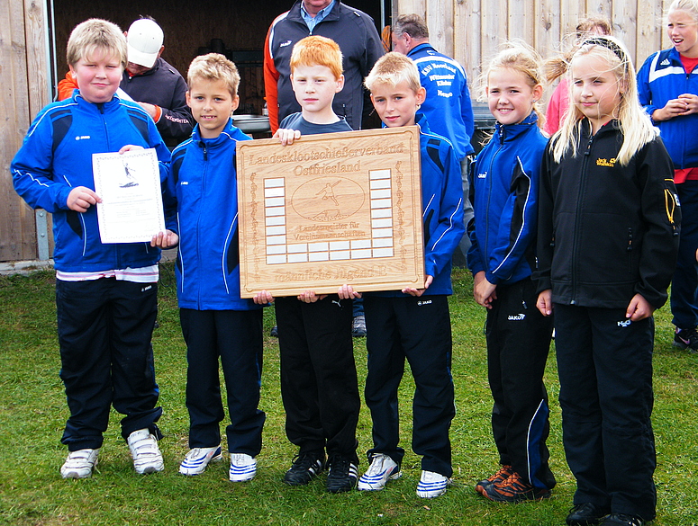 Anna Oldewurtel (Platz 5-20,65m), Jasmina Doolmann (Platz 1-43,70m) und Ralf Look (Platz 2-73,75m) qualifizierten sich bei den Landesmeisterschaften “Kloot” 2012 in Tannenhausen zur Verbandsmeisterschaft auf FKV Ebene (100:100) am 22.09.2012, die ebenfalls in Tannenhausen stattfinden. Jasmina sicherte sich mit Platz 1 und hervorragenden 43,70 m den Landesmeistertitel. |