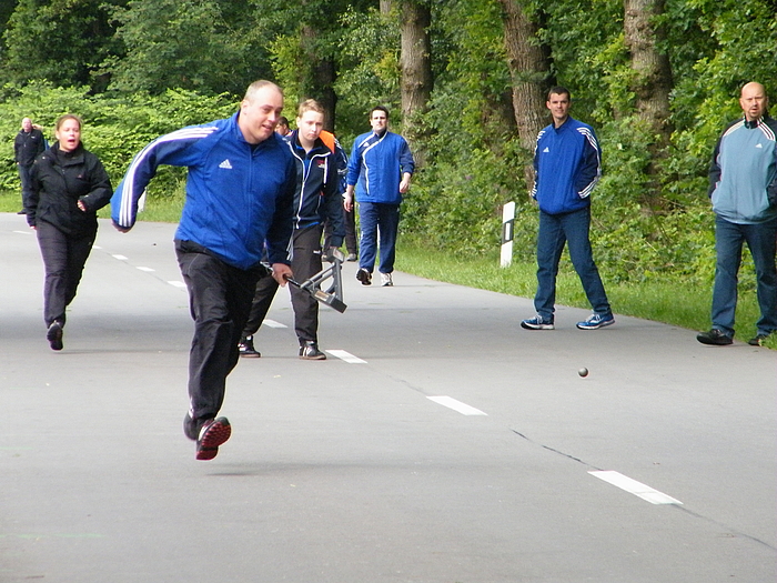 Die Hollandkugelmeisterschaften auf Landesebene fanden diesmal in Tannenhausen auf dem Mehrzweckgelände statt. Leider fand sich kein geeignetes Feld, um ein Streckenwerfen durchzuführen. Nicht wie in den vorherigen Jahren in Hage, wurde es diesmal ein Standkampf.