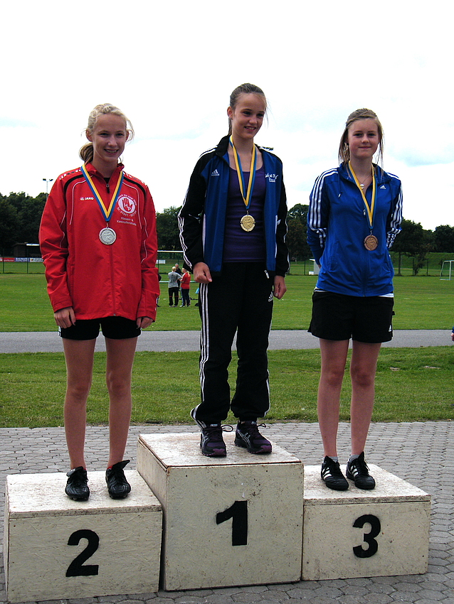 Wir hatten heute die Möglichkeit einen denkwürdigen Wurf von Jasmina Doolmann zu sehen, einen gewaltigen Wurf von 54,40 Meter. Dieser Wurf war in der weibl. Jugend C noch keinem gelungen. Das bedeutet Jasmina Doolmann (auch ein wenig “Bahn free” Großheide) hat einen neuen FKV-Rekord aufgestellt. Kurz zuvor war es auch Lene Gerjets gelungen. Aber Jasmina konnte das noch toppen und holte sich die Goldmedaille.