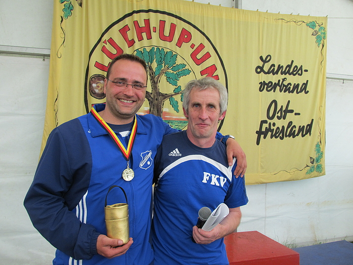 Bis zum Finale mussten wir sechs spannende Runden überstehen, die wir alle für uns entscheiden konnten. Ein großer Vorteil für uns war natürlich Meinhard als unser Bahnweiser. Im Finale mussten wir uns gegen Harm Weinstock und Ralf Klingenberg aus Rahe beweisen. Aber auch diese Aufgabe konnten wir zu unseren Gunsten meistern. Und so hieß es um ca. 18.00 Uhr Sieg für Ralf Look und Jens Slink. Die Freude war natürlich riesig!