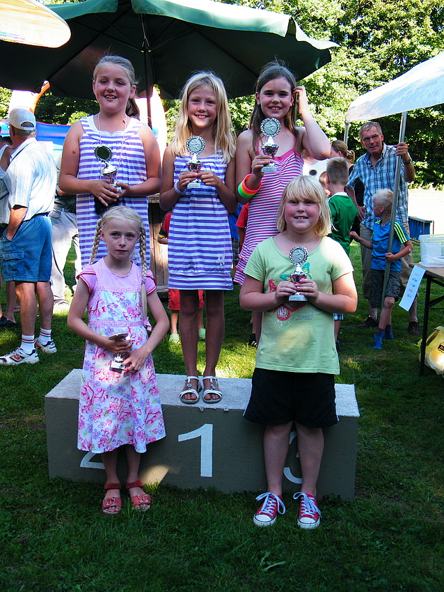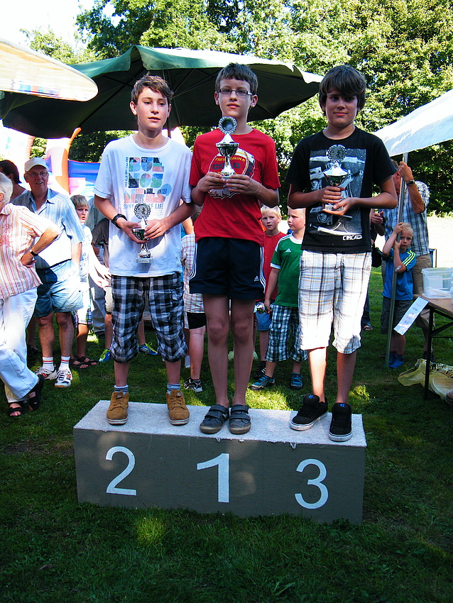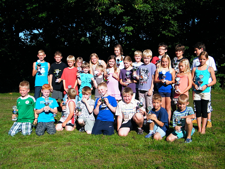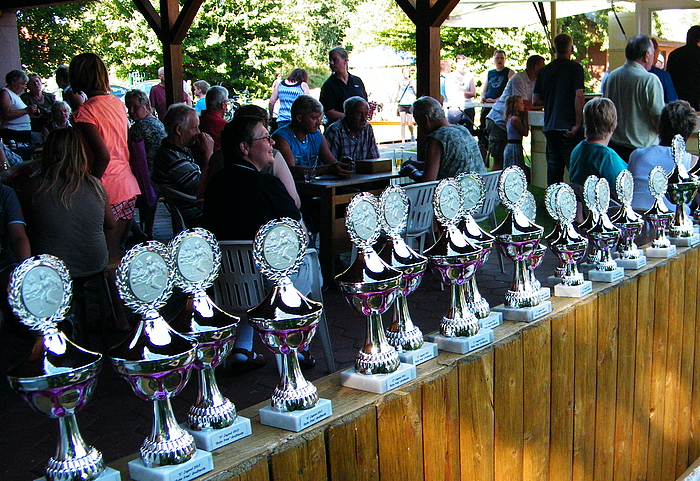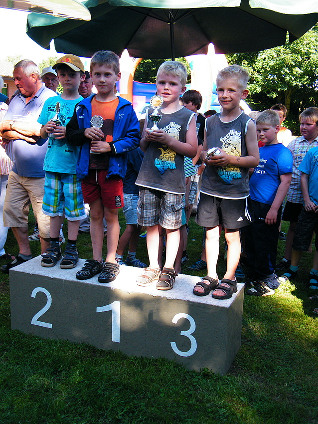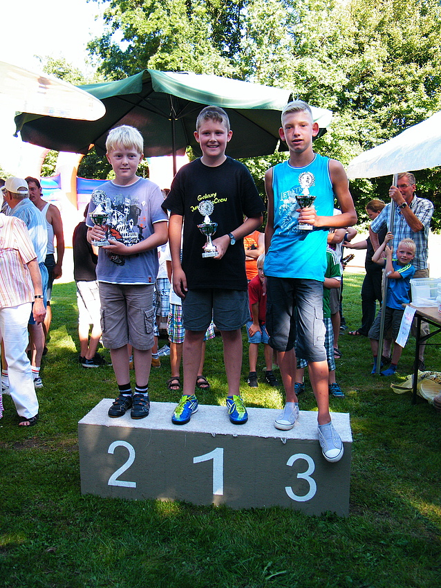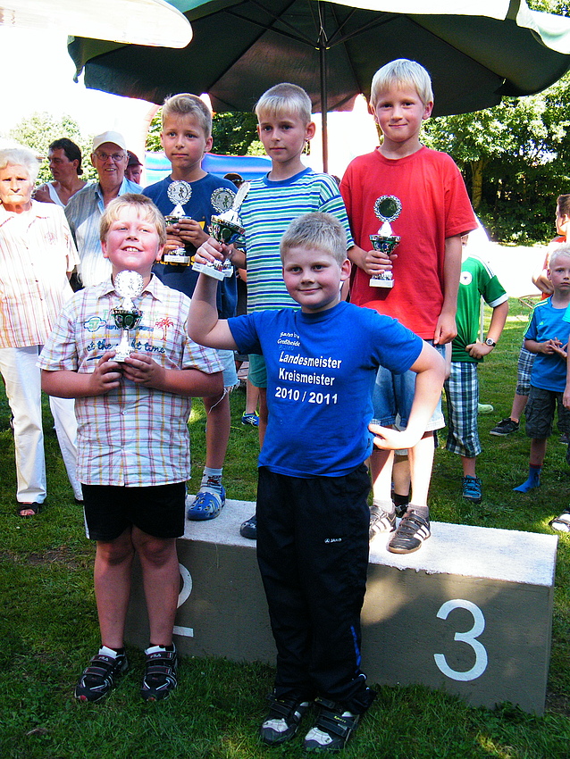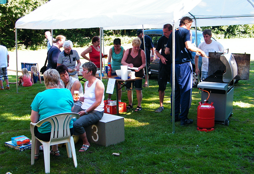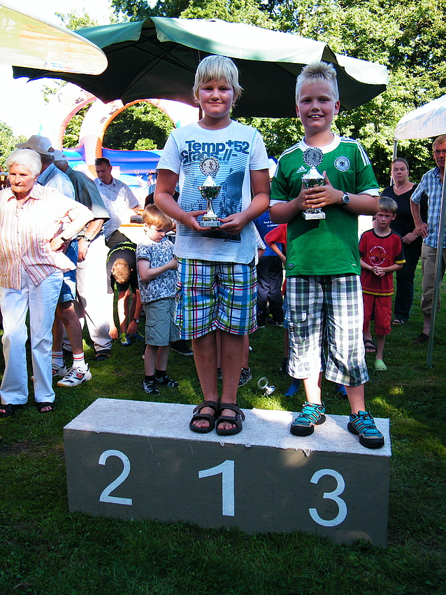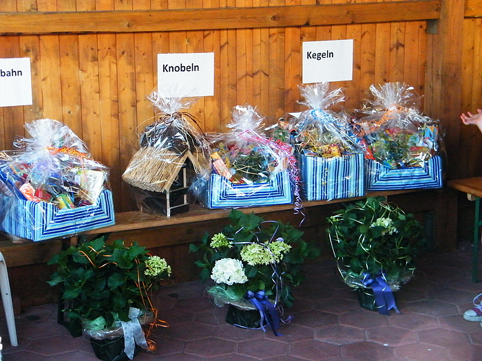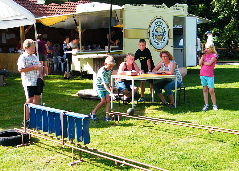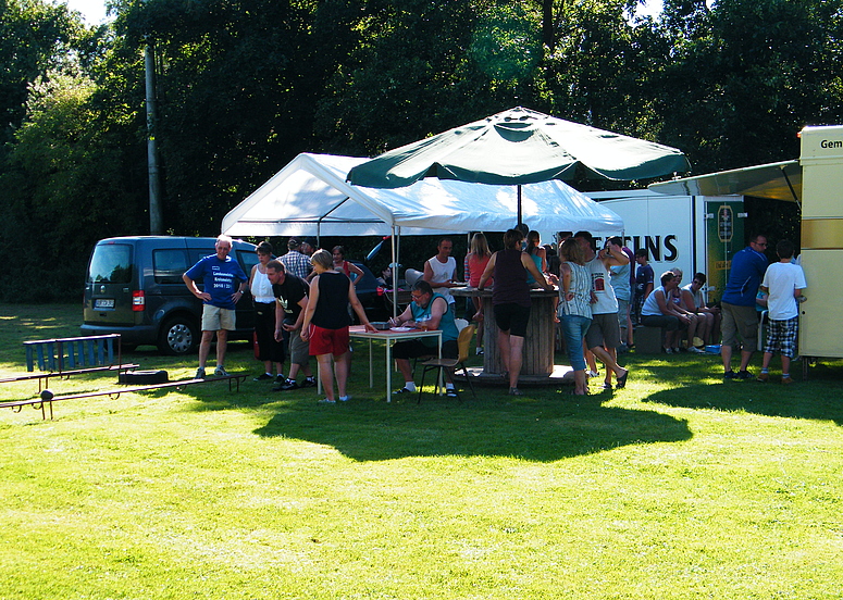 Über 25 Grad, Sonnenschein und keine Wolke am Himmel, also Sommerwetter beim Sommerfest. Dieses Jahr wurde eine Flohmarkttombola für unsere Jugend organisiert, dieses war ein voller Erfolg. Somit können unsere Jugendmannschaften durch die Einnahme beim Flohmarkt gefördert werden. Nicht nur bei der Klüterbahn, beim Kegeln oder Knobeln waren schöne Preise zu holen, auch unsere Jugend freute sich über die Pokale, die die Jugendmannschaften vorher ausgeworfen hatten. Für das leibliche Wohl hatte unser Festausschuß alles hervorragend organisiert. Alles zusammen ergab ein schönes Sommerfest. |
